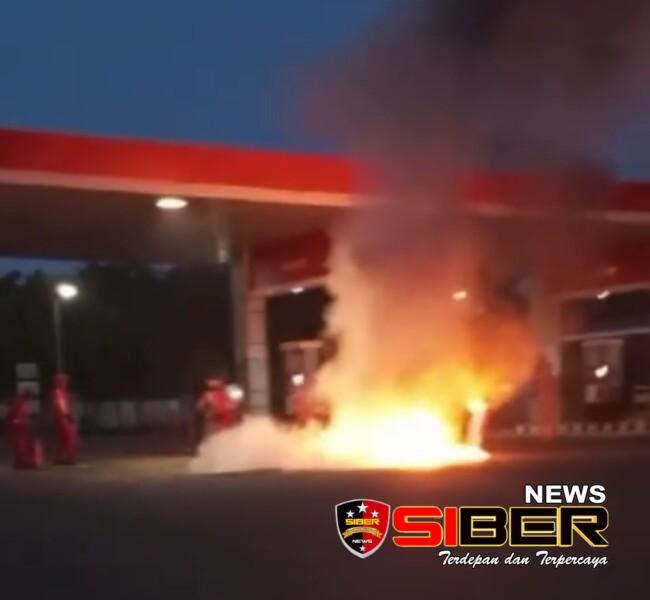 Ansori selaku pengawas pom tesebut saat dihubungi via pesan WhatsApp nya membenarkan adanya kebakaran sepeda motor tersebut “Ya benar mas itu terjatuh posisi sepeda hidup lalu terjadi kebakaran”pungkasnya.