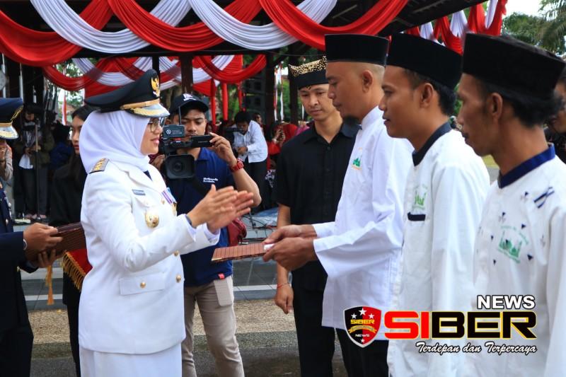 Surat Keputusan (SK) remisi diserahkan langsung secara simbolis oleh Bupati Banyuwangi Ipuk Fiestiandani dengan didampingi Kalapas Banyuwangi dan jajaran Forkopimda kepada 5 perwakilan narapidana di Taman Blambangan Banyuwangi usai pelaksanaan Upacara Peringatan HUT RI ke 78, Kamis (17/8).