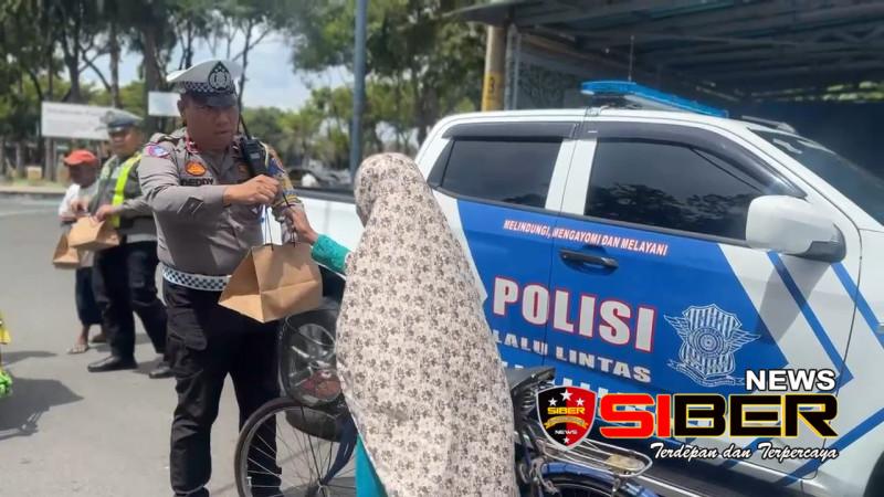 Pada kegiatan tersebut, anggota Satlantas Polres Situbondo membagikan 100 paket makanan siap saji.