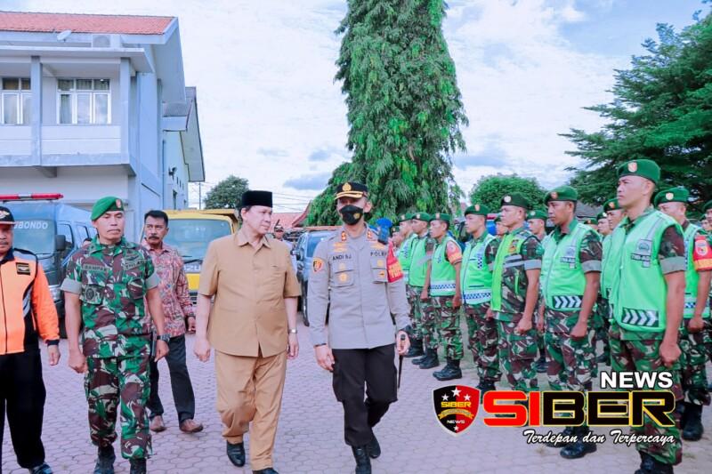Usai apel, Kapolres Situbondo bersama Forkopimda mengecek kesiapan personel dan sarana prasarana dalam penanganan bencana alam. (Tim)