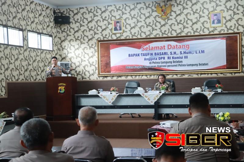 Lampung Selatan, SIBERNEWS.CO.ID _ Polres Lampung Selatan menerima Kunjungan Kerja Anggota DPRD RI Komisi III Taufik Basari di Aula GWL Polres Lampung Selatan dalam rangka penyerapan aspirasi personil Polres Lampung Selatan. Jumat, 16 Juni 2023. Pukul 08.30 Wib
