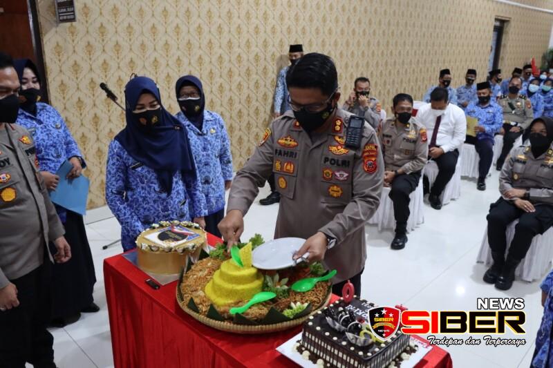 CIREBON, SIBERNEWS.CO.ID _ Kapolres Cirebon Kota Akbp M. Fahri Siregar, SH.S.IK.MH memimpin kegiatan syukuran HUT KORPRI (Korps Pegawai Republik Indonesia) yang Ke-50 tahun secara sederhana bertempat di Aula Sanika Satyawada Polres Cirebon Kota Jl. Veteran Kec. Kejaksan Kota Cirebon. Senin (29/11/2021).