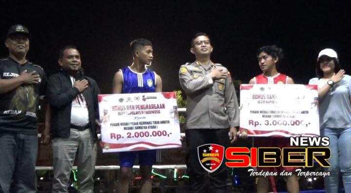 Dalam kesempatan baik ini Kapolres Bondowoso AKBP Wimboko,S.I.K memberikan apresiasi kepada dua atlet Bondowoso yang menorehkan juara di Medan yaitu atlet tinju Vini Vidi Vici dan Dehan Chamelin asal Bondowoso.