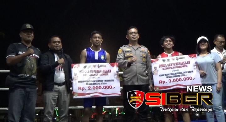 Dalam kesempatan baik ini Kapolres Bondowoso AKBP Wimboko,S.I.K memberikan apresiasi kepada dua atlet Bondowoso yang menorehkan juara di Medan yaitu atlet tinju Vini Vidi Vici dan Dehan Chamelin asal Bondowoso.