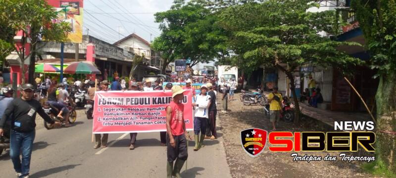 Banyuwangi, SIBERNEWS.CO.ID _ Warga terdampak bencana banjir bandang yang tergabung dalam Forum Peduli Kalibaru melakukan aksi demo damai di Perkebunan PTPN XII.