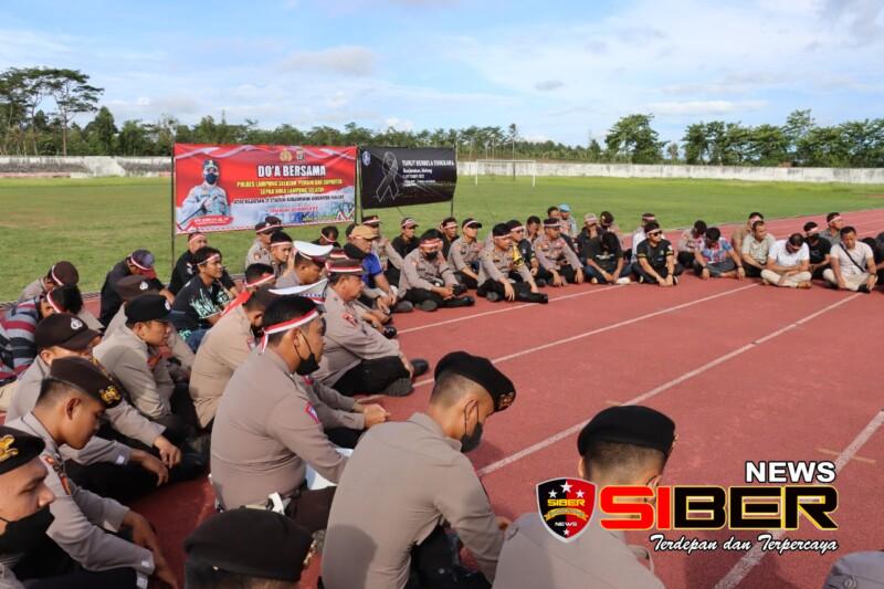 Lampung Selatan, SIBERNEWS.CO.ID _ Polres Lampung Selatan bersama dengan pemain serta element suporter sepak bola di Kalianda melaksanakan kegiatan Aksi Solidaritas dan do’a bersama atas Kejadian di Stadion Kanjuruhan Kab. Malang Prov. Jawa Timur dengan tema “Damailah sepak bola ku” di Stadion Jati Kalianda Kab. Lampung Selatan. Selasa, 04 Oktober 2022 sekira pukul 15.40.