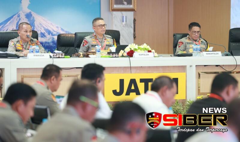 SURABAYA, SIBERNEWS.CO.ID – Kepolisian Daerah Jawa Timur menggelar Analisa dan Evaluasi (Anev) Situasi Keamanan dan Ketertiban Masyarakat (Sitkamtibmas), yang dilaksanakan di Rupatama, Mapolda Jatim, Selasa (9/1/2024).