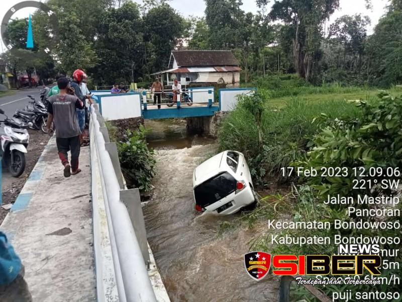 Bondowoso, SIBERNEWS.CO.ID _ Berlokasi di jembatan Dusun Bunder Desa Pancoran Jl.Raya Mastrip (tepatnya di sisi barat jembatan Mastrip) telah terjadi kecelakaan tunggal yang mengakibatkan sebuah mobil masuk sungai yang dikendarai oleh seorang warga Perumahan Pancoran.Jumat tanggal 17 Februari 2023 sekira pukul 10.45 WIBJumat tanggal 17 Februari 2023 sekira pukul 10.45 WIB