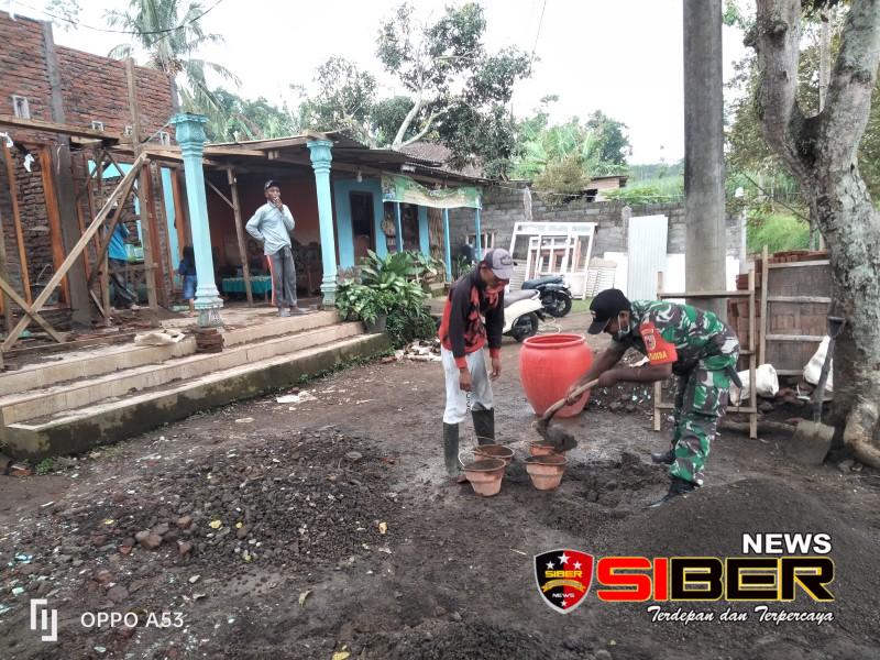 Bondowoso, SIBERNEWS.CO.ID _ Guna terciptanya sinergitas TNI bersama Rakyat, Babinsa Posramil 0822/12 Sumber Wringin Kopral Kepala Ringgo Gelardus Boseren melaksanakan karya bhakti dalam hal ini membantu perbaikan rumah milik warga binaannya.