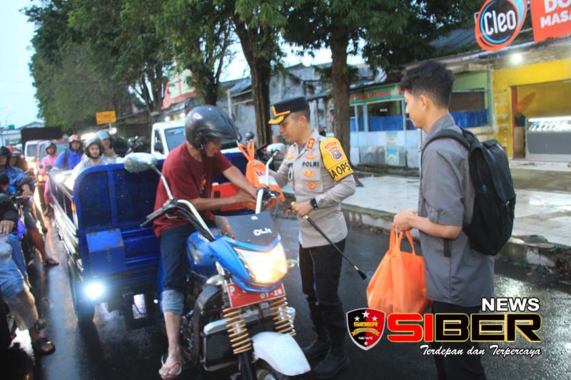 100 paket takjil dibagikan kepada pengendara roda dua maupun roda empat yang melintas. Tidak hanya membagikan makanan berbuka, para personel juga menyampaikan imbauan kepada masyarakat agar selalu tertib berlalu lintas dan menjaga keamanan selama bulan Ramadan.