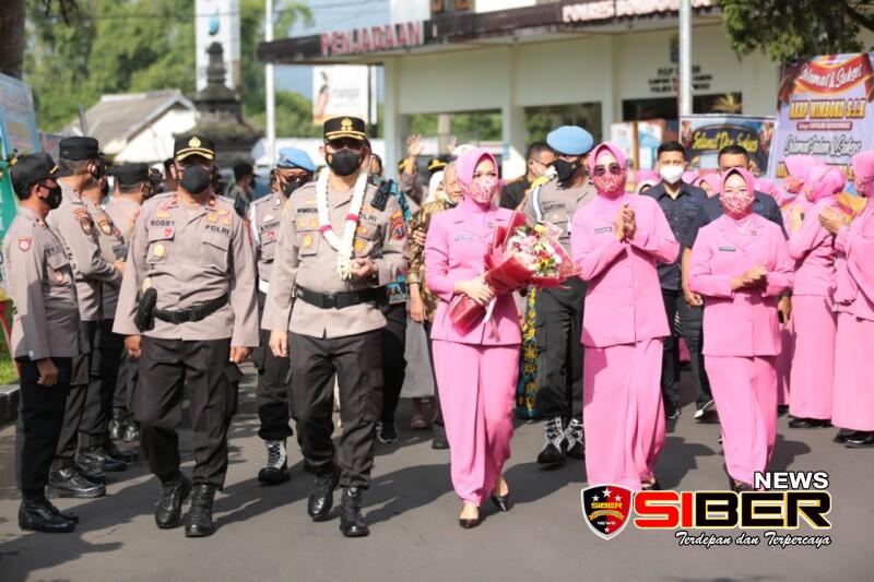 Kemudian, diikuti dengan penyambutan dengan penyematan bunga di Mapolres setempat pada Jum’at (25/2/2022).