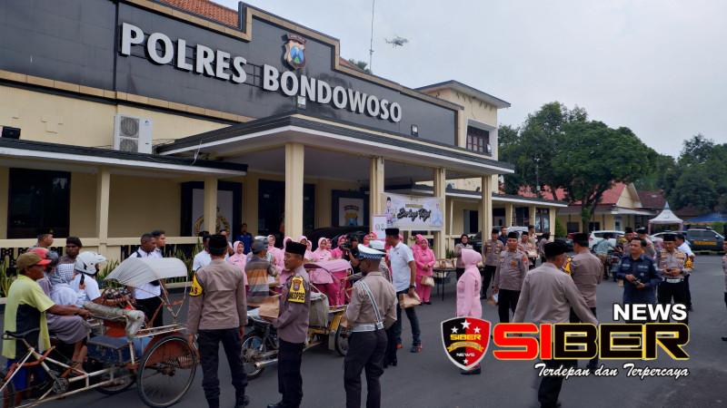 Dalam kegiatan ini di bagikan takjil sebanyak 200 paket kepada tukang becak dan pengendara jalan yang melintas di depan Mapolres Bondowoso.