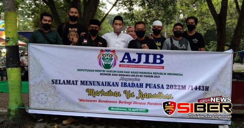 Aliansi Jurnalis Independen Bondowoso ( AJIB ) terus bergerak melakukan kegiatan Baksos dan hari ini memberikan takjil kepada pengguna jalan di pusat kota alun-alun Bondowoso, Minggu (10/4/2022).