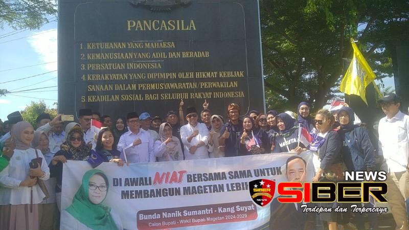 MAGETAN, SIBERNEWS.CO.ID – Pasangan Nanik Endang Rusminiarti – Suyatni (NIAT) mendaftarkan diri sebagai Calon Bupati dan Wakil Bupati ke KPU Magetan, Rabu (28-08-2024).