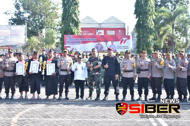 Dalam apel tersebut, Kapolres, Bupati dan Dandim 0823 menyerahkan penghargaan kepada para pemenang lomba Satkamling yakni juara 1 Perumahan Bumi Ayu Kec. Situbondo, Juara 2 Perumahan Karang Polo Kec. Panarukan dan Juara 3 Perumnas Panji Permai Kec. Panji. (Red)