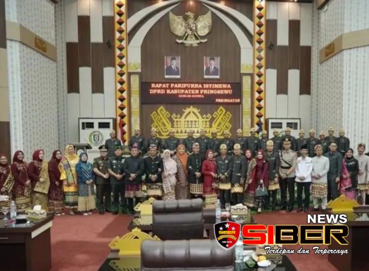 Rapat paripurna istimewa HUT Ke-16 Kabupaten Pringsewu dihadiri Wabup Umi Laila, Sekda Andi Purwanto, Kapolres Pringsewu AKBP M.Yunus Saputra, Dandim 0424 Letkol Inf.Vicky Heru Harsanto, Kajari Raden Wisnu Bagus Wicaksono beserta kepala instansi vertikal lainnya, para eksponen P3KP, akademisi, tokoh masyarakat, adat dan agama, Ketua TP-PKK Rahayu Riyanto beserta berbagai elemen lainnya. ( Yogi Ao )