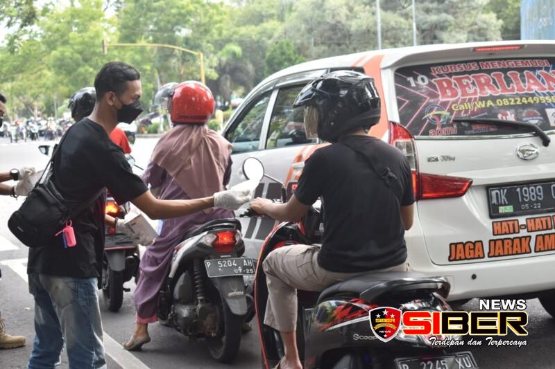 Titik pertama di lampu merah Jalan Ahmad Yani, depan SDN Dabasah 1 Bondowoso pengendara kendaraan yang kedapatan tidak memakai masker team CCF langsung memberikan masker gratis kepada mereka.
