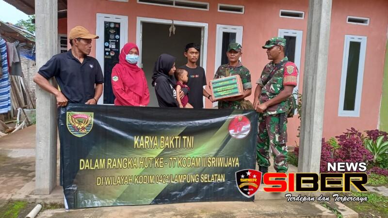 Lampung Selatan, SIBERNEWS.CO.ID _ Peduli stunting, di HUT Kodam II Sriwijaya yang ke 77 , Koramil 421-03/Penengahan memberikan tali asih bantuan kepada beberapa keluarga, anak stunting di Desa Kelaten Kecamatan Penengahan dan Desa Pasuruan Kecamatan Penengahan. Kamis, 29/12/2022.
