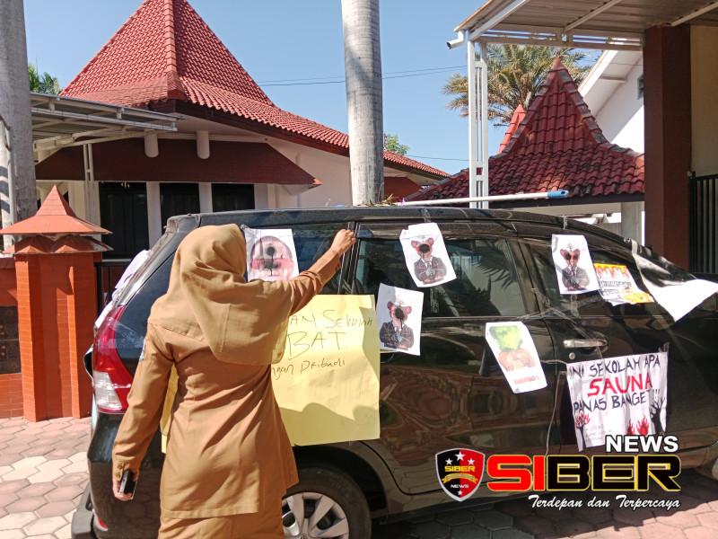 Selain itu, pintu masuk ruang guru dan kepala sekolah disegel siswa, bahkan mobil dinas pun tak luput dari sasaran penyegelan oleh siswa-siswi Smada Situbondo.
