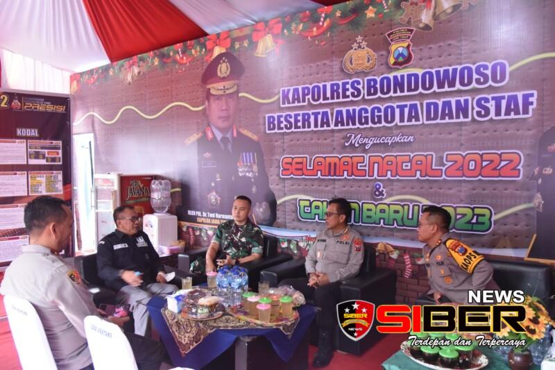 Bondowoso, SIBERNEWS.CO.ID _ Komandan Kodim 0822/Bondowoso Letkol Arm Suhendra Chipta, M.Tr.Hanla., dan Kapolres Bondowoso AKBP Wimboko, SIK, bersama Sekda Bondowoso Drs. Bambang Soekwanto, MM., melaksanakan pengecekan Pos PAM Natal 2022 dan Tahun Baru 2023 di beberapa titik Pos Pengamanan, Minggu (25/12/2022).