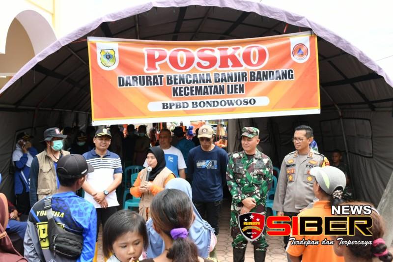 Bondowoso, SIBERNEWS.CO.ID _ Dandim 0822/Bondowoso Letkol Arm Suhendra Chipta, M.Tr.Hanla., didampingi Kapolres Bondowoso AKBP Wimboko, SIK, beserta unsur Forkopimda melaksanakan kegiatan penyaluran bansos dari Gubernur Jatim Dra. Hj. Khofifah Indar Parawansa kepada korban terdampak banjir bandang Ijen di halaman masjid At Taqwa Kampung Baru Desa Kalisat, kegiatan ini sebagai kolaborasi di wilayah Kabupaten Bondowoso, Jum’at (17/2).