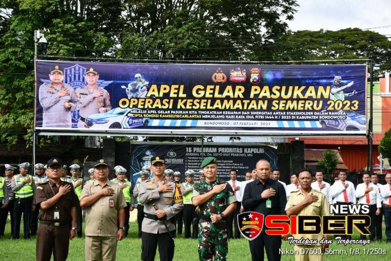 Bondowoso, SIBERNEWS.CO.ID _ Bertempat dilapangan Mapolres Bondowoso Jl. Veteran No.01 Kel. Dabasah Kec/Kab. Bondowoso telah dilaksanakan Apel gelar pasukan dalam rangka Operasi Keselamatan Semeru 2023, Selasa (7/2).