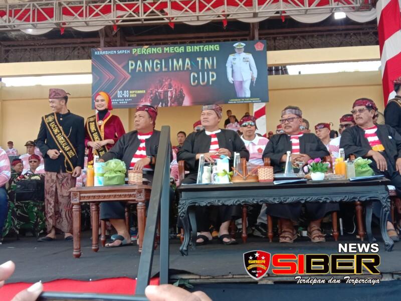 Bondowoso, SIBERNEWS.CO.ID _ Dandim 0822 Bondowoso Letkol Arm Suhendra Chipta, M.Tr.Hanla., bersama Dansat jajaran Kodam V/Brawijaya menghadiri lomba Kerabhen Sapeh Perang Mega Bintang Piala Panglima TNI Cup di stadion Jalan Pertahanan, Kampung Skep, Kelurahan Bancaran Kecamatan Bangkalan, Kabupaten Bangkalan, Jatim, Sabtu (2/9/2023).