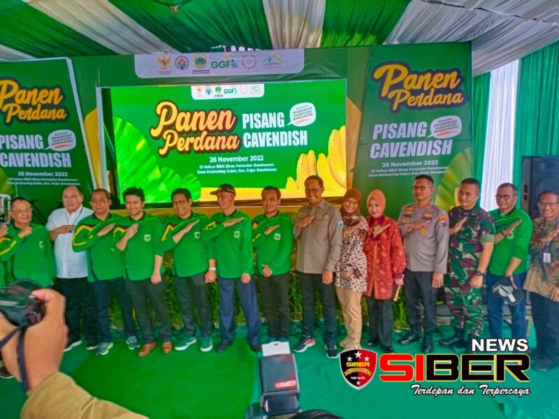 Dandim 0822 bersama Forkopimda Bondowoso menghadiri panen perdana pisang Cavendish, bertempat di kebun bibit Dinas Pertanian Bondowoso Desa Maskuning Kulon Kecamatan Pujer Kabupaten Bondowoso, Sabtu (26/11).
