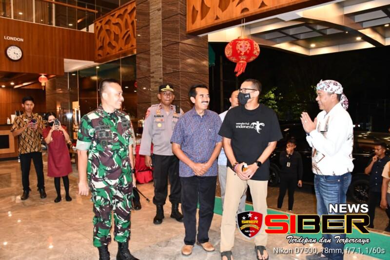 Bondowoso, SIBERNEWS.CO.ID _ Untuk yang kesekian kali Menteri Pariwisata dan Ekonomi Kreatif (MenParekraf) Republik Indonesia, Bapak Dr. H. Sandiaga Salahuddin Uno, B.B.A, M.B.A. dan rombongan mengunjungi kota Tape Bondowoso dalam rangka program Ijen Geopark dan UMKM bertempat di Hotel Grand Padis Jl. A. Yani No 28 kelurahan Badean, Kec/Kab BondowosoBondowoso, Sabtu malam (14/1).