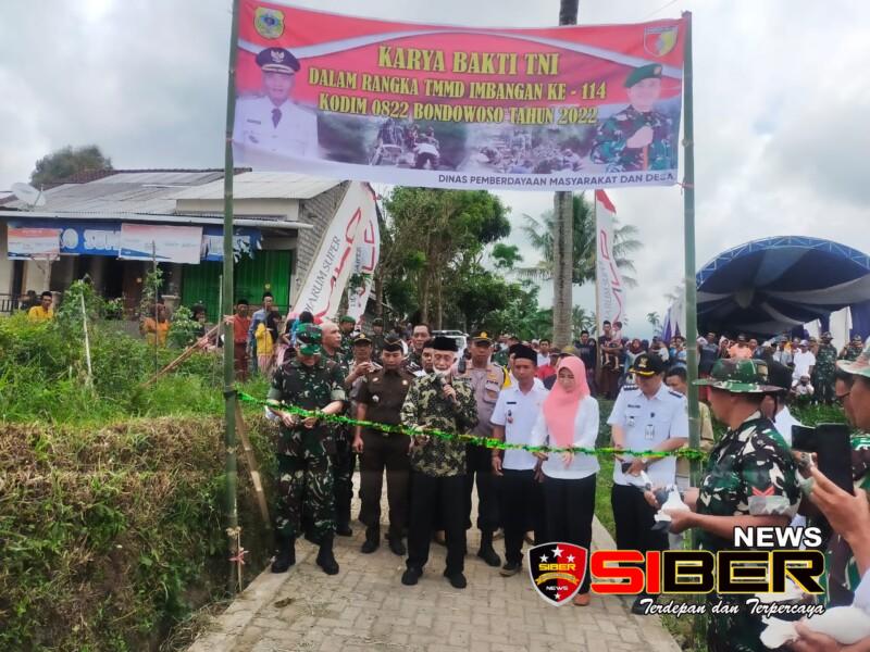 Bondowoso, SIBERNEWS.CO.ID _ Dandim 0822/Bondowoso Letkol Arm Suhendra Chipta, M.Tr.Hanla., mendampingi Bupati Bondowoso Drs. KH. Salwa Arifin dalam kegiatan program terpadu lintas sektoral Penutupan Karya Bakti TNI Manunggal Membangun Desa (TMMD) Imbangan Ke-114 Tahun 2022, bertempat di Dusun Duren Desa Brambangan Kec. Tlogosari Kab. Bondowoso, Rabu (9/11/2022).
