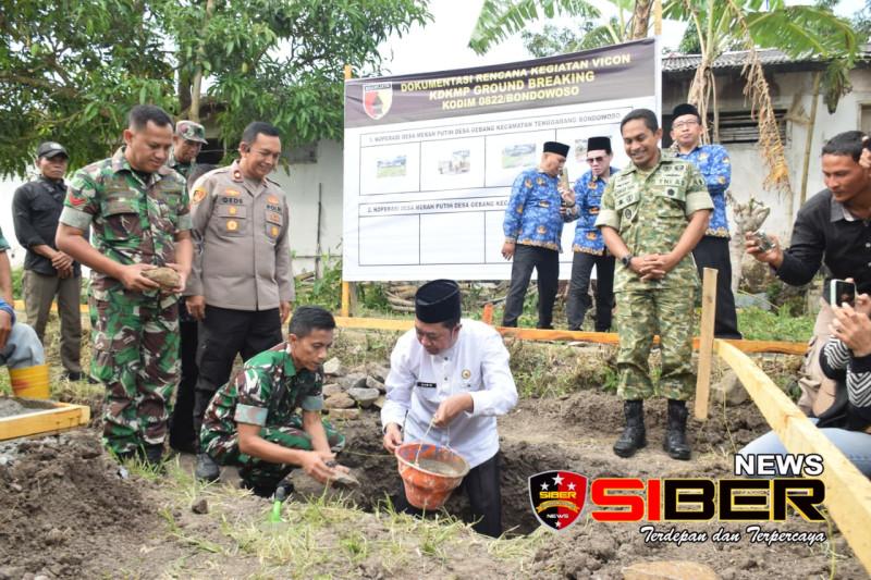 Di Bondowoso, kegiatan groundbreaking berlangsung penuh semangat kebersamaan. Dandim 0822/Bondowoso Letkol Arh Achmad Yani, S.E., M.Han., bersama Bupati Bondowoso KH. Abdul Hamid Wahid, M.Ag, dan jajaran Forkopimda hadir langsung menanam batu pertama sebagai simbol dimulainya pembangunan Koperasi Desa Kelurahan Merah Putih.
