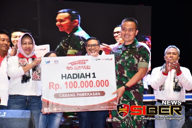 Bondowoso, SIBERNEWS.CO.ID _ Dandim 0822 dan Forkopimda Bondowoso menghadiri kegiatan Gemerlap Undian Simpeda dengan tema ”Go Better” yang diselenggarakan oleh PT Bank Pembangunan Daerah Jawa Timur Tbk (Bank Jatim) Cabang Bondowoso bertempat di Alun-alun Bondowoso, Sabtu malam (29/10/2022).