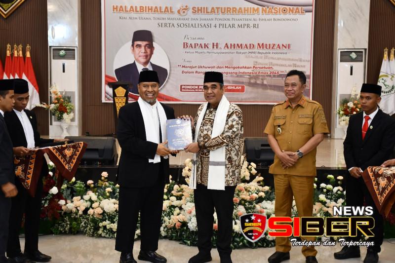 Bondowoso, SIBERNEWS.CO.ID — Ribuan pasang mata tertuju pada Pondok Pesantren Al-Islah di Kabupaten Bondowoso, Selasa (6/5), ketika Ketua MPR RI, Dr. H. Ahmad Muzani, menghadiri kegiatan Halal Bihalal, Silaturahim Nasional bersama alim ulama, serta Kajian Kebangsaan dan Sosialisasi Empat Pilar Kebangsaan. Acara berlangsung khidmat dan penuh semangat kebangsaan, dengan dihadiri lebih dari 500 peserta dari berbagai lapisan masyarakat dan tokoh penting daerah.