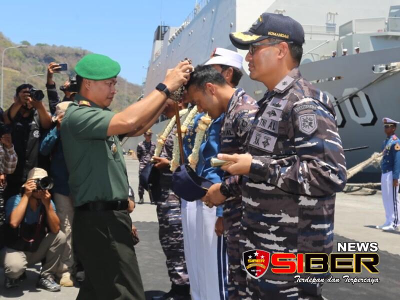BANYUWANGI, SIBERNEWS.CO.ID- Letkol Kav Eko Julianto Ramadan, M. Tr. (Han) Dandim 0825/Banyuwangi bersama jajaran Forkopimda menyambut kedatangan KRI Makassar-590 dan KRI Dewaruci serta Satgas Lattek Jalasesya Taruna AAL Tingkat II Angkatan ke-71 Tahun 2023 dengan Komandan Satgas Jalasesya 2023 Letkol Laut (P) Sugeng Hariyanto Komandan KRI Dewaruci yang bertempat di Dermaga Tanjung Wangi (PIT.07) Ketapang, Banyuwangi. Senin (20-11-2023)
