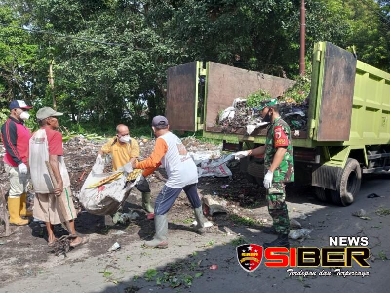 Bondowoso, SIBERNEWS.CO.ID – upaya menjaga Kebersihan lingkungan wilayah, Babinsa Koramil 0822/09 Pujer bersama masyarakat membersihkan tumpukan sampah di pasar tradisional pujer, Sabtu (17/02/24 ).