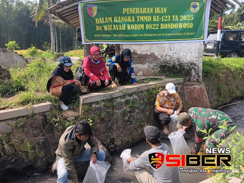 Bondowoso, SIBERNEWS.CO.ID – 6 Maret 2025 – Dalam upaya mendukung ketahanan pangan dan meningkatkan ekonomi warga, Satgas TMMD ke-123 Kodim 0822 Bondowoso bersama Dinas Perikanan menggelar kegiatan penebaran 4.400 benih ikan nila di perairan Desa Trotosari, Dusun Krajan. Kegiatan ini turut dihadiri Babinsa Kopka Lukman, Kepala Desa, serta masyarakat setempat yang antusias menyambut program ini.