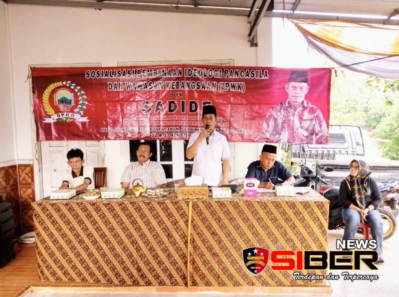 ” Ideologi pancasila dan wawasan kebangsaan (IPWK). Sudah menjadi agenda rutin dan tugas para Anggota Dewan Perwakilan Rakyat Daerah(DPRD) dan termasuk saya sendiri di luar gedung dengan terjun langsung ke masyarakat untuk memaparkan mensosialisasikannya di daerah pemilihan (Dapil) masing-masing,” tutur DPRD fraksi PDIP H. Sadide