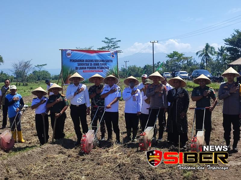 Dukung Program Presiden RI,Polres Bondowoso Adakan Penanaman Jagung Di Ponpes Mambaul Ulum Desa Kerang
