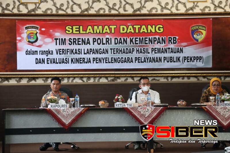 Lampung Selatan, SIBERNEWS.CO.ID _ Kementerian Pendayagunaan Aparatur Negara dan Reformasi Birokrasi Republik Indonesia (Kemenpan-RB RI) kunjungi Polres Lampung Selatan terkait pemberitahuan verifikasi lapangan hasil pemantauan dan evaluasi kinerja penyelenggara pelayanan publik dilingkungan kesatuan Polres Lampung Selatan. Kamis, 3 November 2022 Pukul 13.30 Wib.