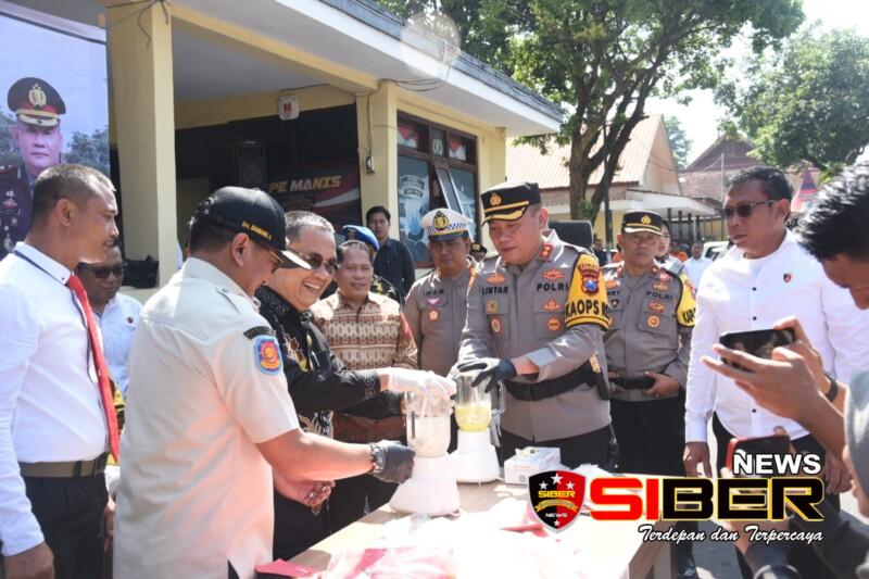 ” Adapun barang bukti yang kami musnahkan diantaranya, 500 Botol minuman Beralkohol berbagai Merk, 0,30 Gram Sabu, 38 Gram Ganja, 5000 Butir Pil berlogo Y warna Putih, 1000 logo DMP warna kuning, jadi total miras ada 2.525 Botol berbagai Merk, “jelas Kapolres Bondowoso.