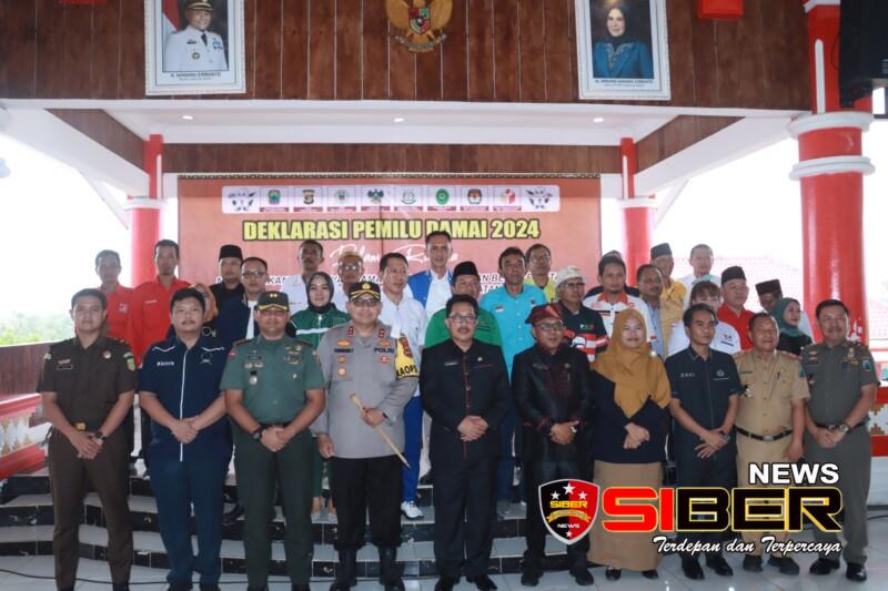 Lampung Selatan, SIBERNEWS.CO.ID _ Guna mewujudkan pemilu yang aman, tertib, damai dan berintegritas di wilayah Kabupaten Lampung Selatan, Polres Lampung Selatan menggelar Deklarasi pemilu damai 2024 di Aula Sebuku Pemkab Lampung, Selasa, 14 November 2023 pukul 14.00 WIB.