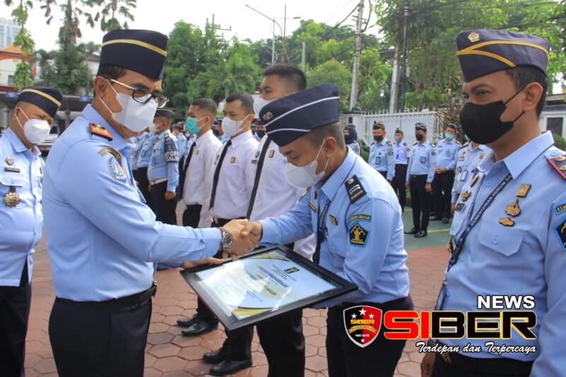 Penghargaan tersebut diserahkan secara simbolis pada pelaksanaan apel pagi yang berlangsung di halaman Kantor Wilayah Kemenkumham Jatim, Senin (28/11).