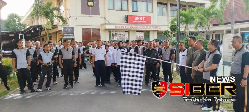 Selesai melaksanakan senam bersama acara dilanjutkan jalan sehat dengan route jalan lingkar Polresta Banyuwangi