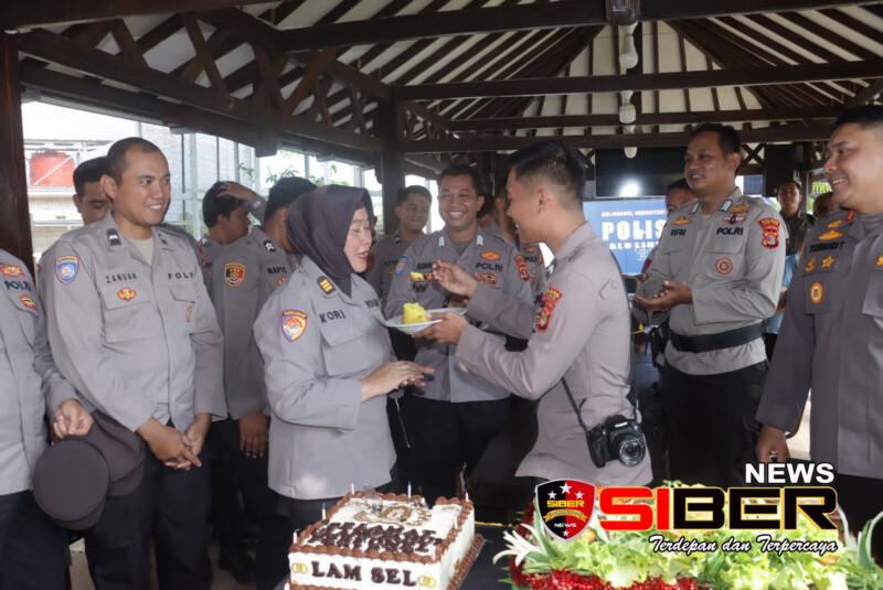 Selain itu, Kapolres Lampung selatan AKBP Yusriandi Yusrin dalam perayaan ulang tahun anggotanya tersebut yang digelar secara sederhana juga terlihat memberikan potongan tumpeng hingga kue Tar kepada anggota yang berulang tahun pada hari tersebut.