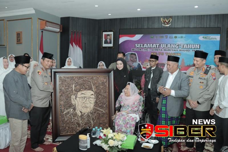 Kapolda Jatim Irjen. Pol. Toni Hermanto Pada momen ini juga memberikan kejutan khusus untuk Hj. Sinta Nuriyah Wahid, yaitu dengan diberikannya sebuah gambar Gus Dur berukuran besar yang dibuat dari batok kelapa yang merupakan produk kerajinan asli Kota Malang (Hms/Dwi)