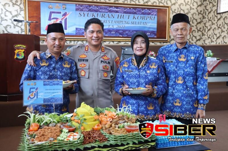 Dengan peringatan Hari Ulang Tahun Ke-51 KORPRI Tahun 2022 ini Kapolres Lampung Selatan AKBP Edwin mengajak anggota ASN Polri di Polres Lampung Selatan meningkatkan kinerja terutama di bidang pelayanan publik serta kepedulian terhadap masyarakat. ASN Polri juga diharapkan menjaga netralitas dan semangat profesionalisme, dan memantapkan fungsi organisasi KORPRI sebagai perekat pemersatu bangsa dalam mendukung pembangunan nasional.