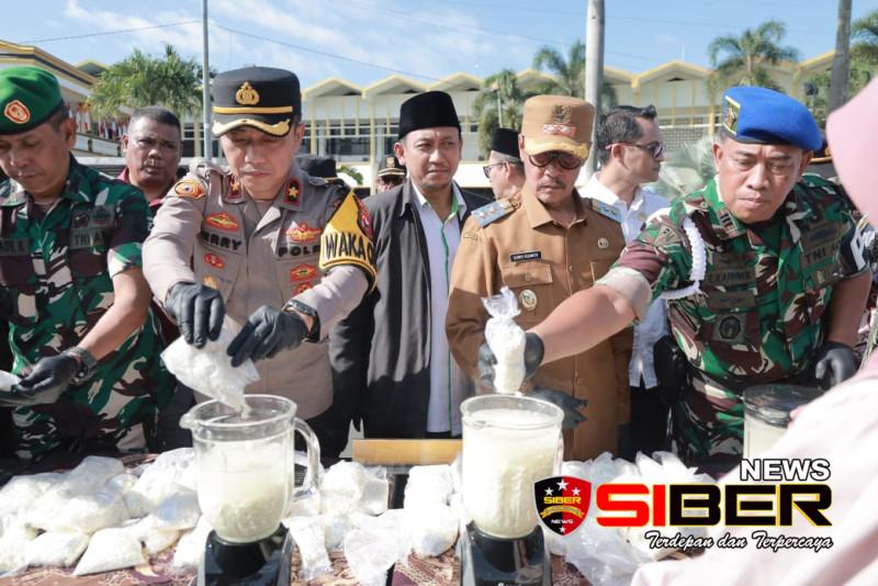 Pemusnahan barang bukti dilakukan secara simbolis oleh jajaran Forkopimda, disaksikan oleh tokoh masyarakat dan elemen terkait. Minuman keras serta narkotika dimusnahkan dengan cara dituangkan ke dalam lubang dan dihancurkan, sementara knalpot brong dipotong menggunakan alat khusus.