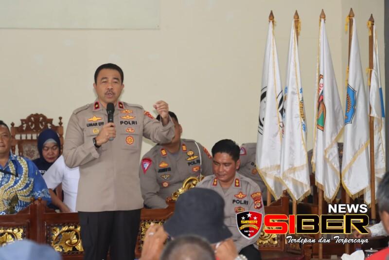 Lampung Selatan, SIBERNEWS.CO.ID _ Kapolres Lampung Selatan AKBP Edwin mendampingi Jumat Curhat Waka Polda Lampung Brigjen Pol. Dr. Umar Effendi, S.IK, M.Si di Balai Desa Jatimulyo Kec. Jati Agung wilayah hukum Polres Lampung Selatan.Jumat,13/01/2023 Pukul 09.00 Wib