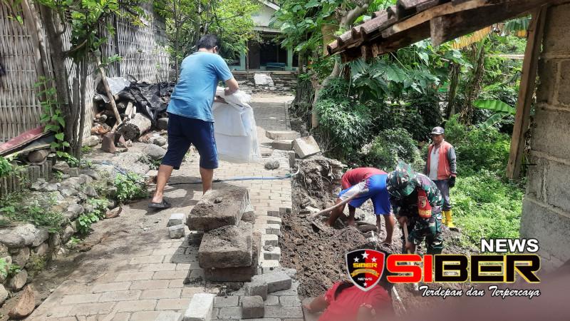 Kades Leprak Bersama Warga di Dampingi Babinsa Laksanakan Kerja Bakti, Perbaiki Tembok Penahan Tanah  Rusak Akibat Tanah yang Labil