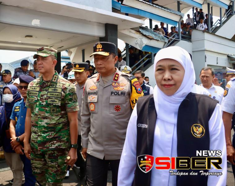 BANYUWANGI, SIBERNEWS.CO.ID – Kapolda Jawa Timur, Irjen Pol Drs Nanang Avianto,M.Si bersama Gubernur Jawa Timur, Khofifah Indar Parawansa, dan Pangdam V/Brawijaya, Mayjen TNI Rudy Saladin, melakukan pengecekan di Pos Terpadu ASDP Pelabuhan Ketapang, Banyuwangi, pada Jumat (28/3/2025).
